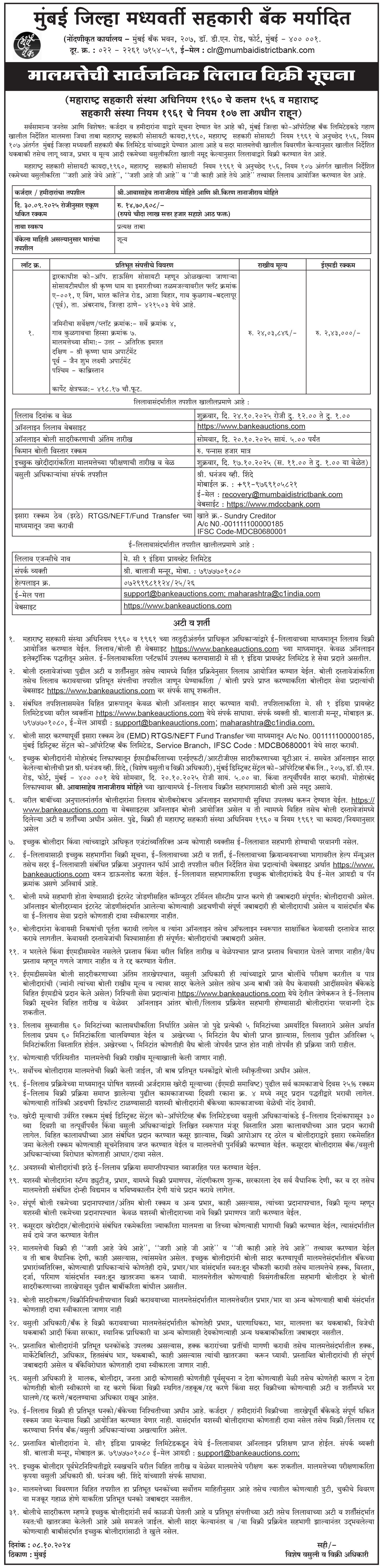 श्री. मनोज नरोत्तमदास ढाका ची ई लिलाव विक्री सूचना मराठी मध्ये. |